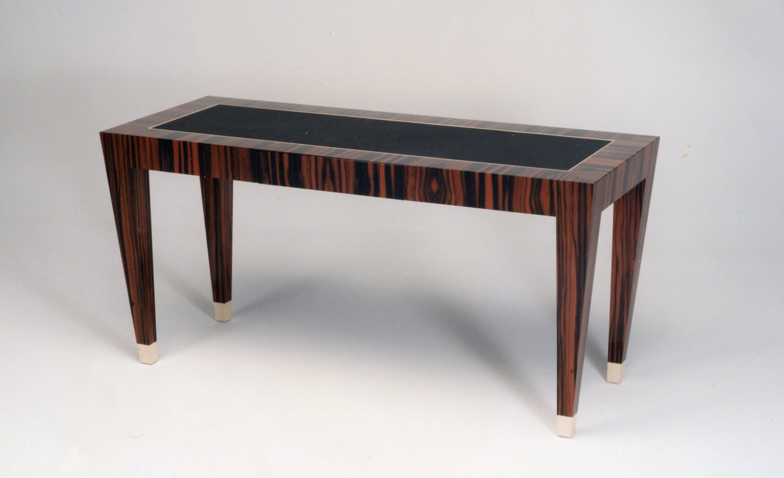 Recently an Internet inquiry came through asking about how to commission a custom writing desk. After some preliminary discussions about various designs including the Kidney Shaped Desk, Rainforest Desk and 1927 Console/Desk it was determined that a customized version of the latter might be most appropriate for the required dimensions of 55" long x 22" deep x 30" high.